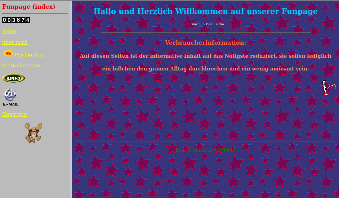 There was no actual content, but of course, it had all the cool things from that time: frame-sets, table layouts, animated gifs and way too colorful wallpapers.
