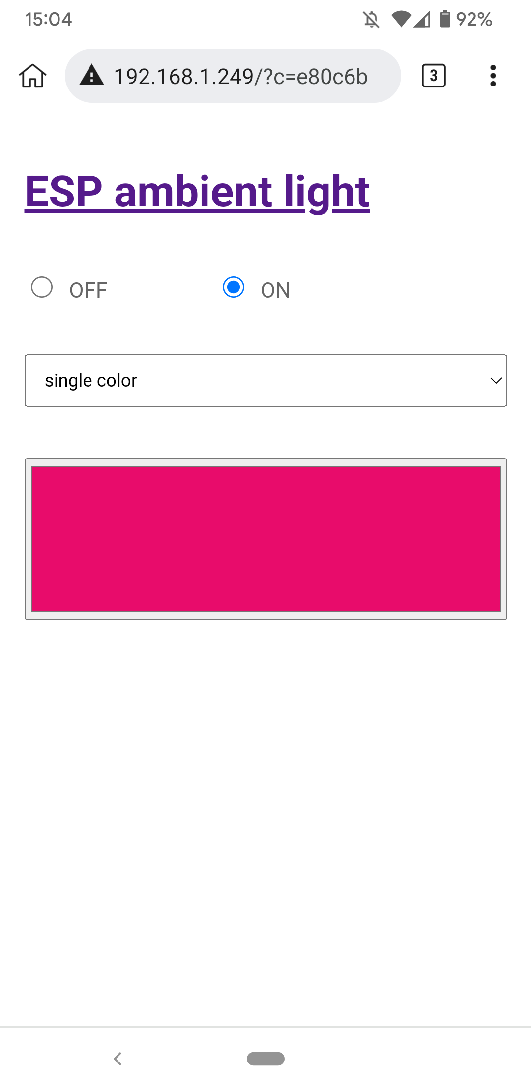 In addition to the HTML form, there's also a JSON endpoint, which is used by the web app. The app scans the IP range of the wifi and finds all ambient lights (img on the right).