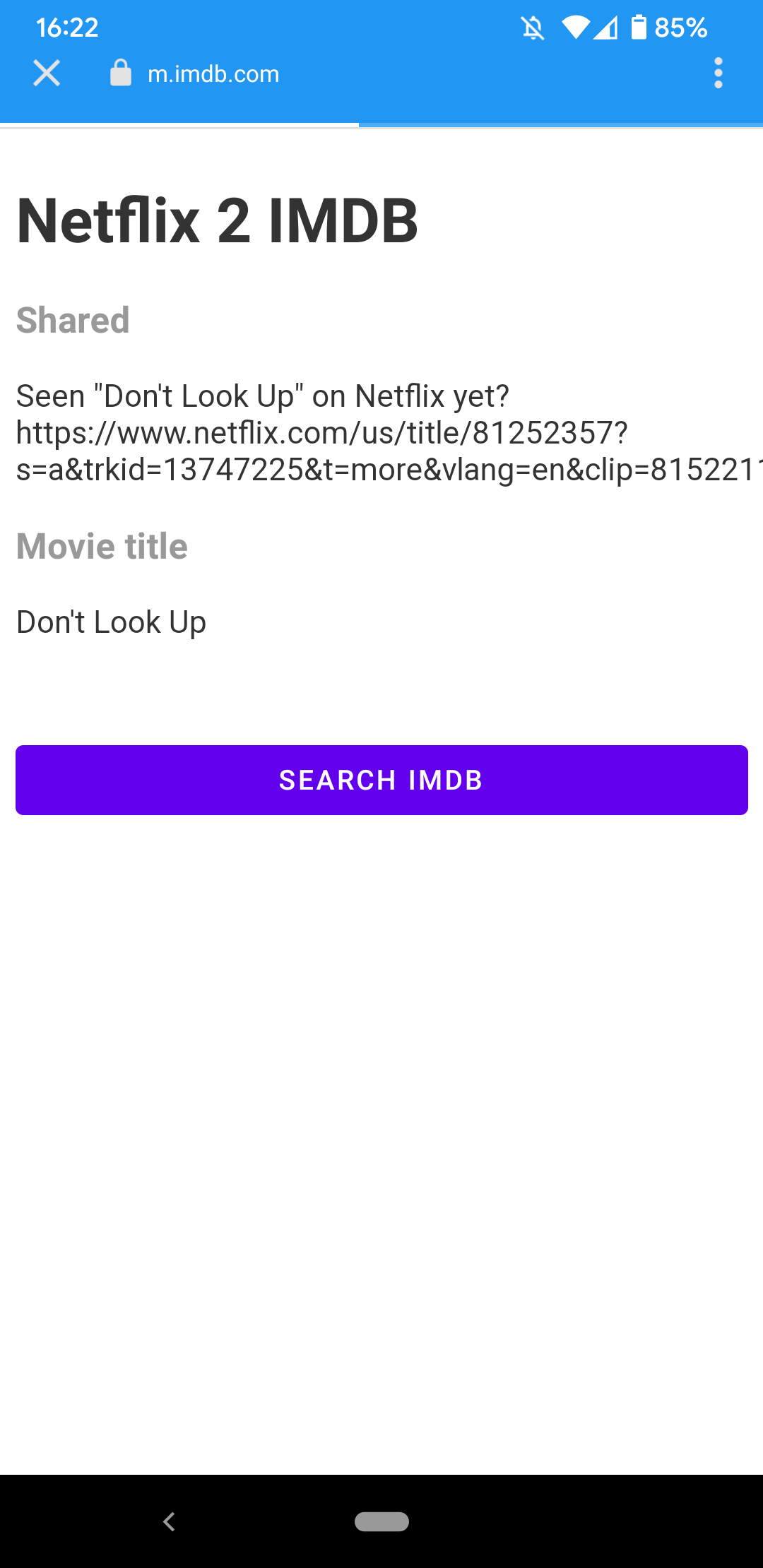 - opens imdb search page with the title of the show, e.g. "Don't look up"