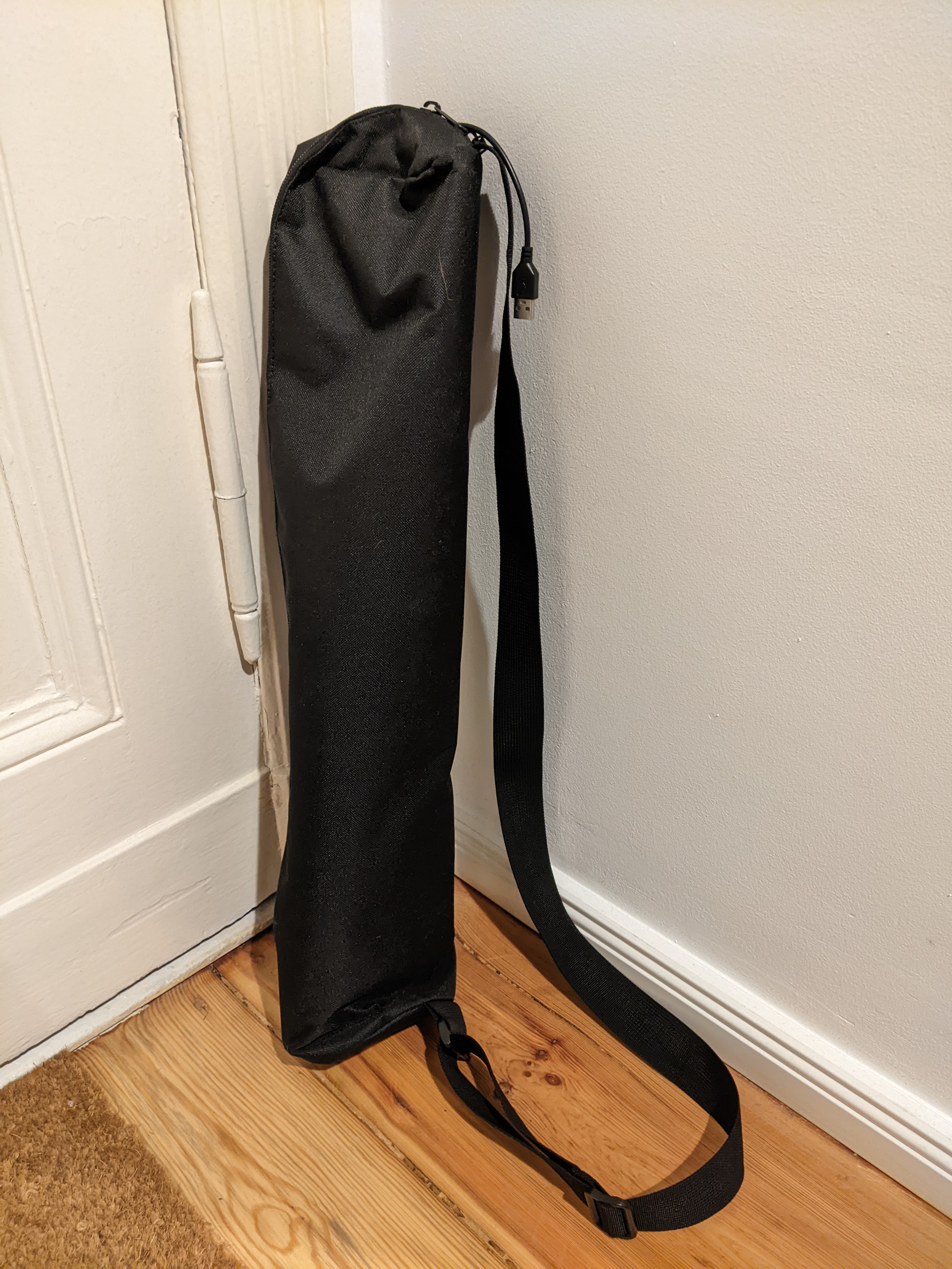 - warm white LEDs with 60 LEDs/meter (~2.5 hours with a 20.000Ah power bank)