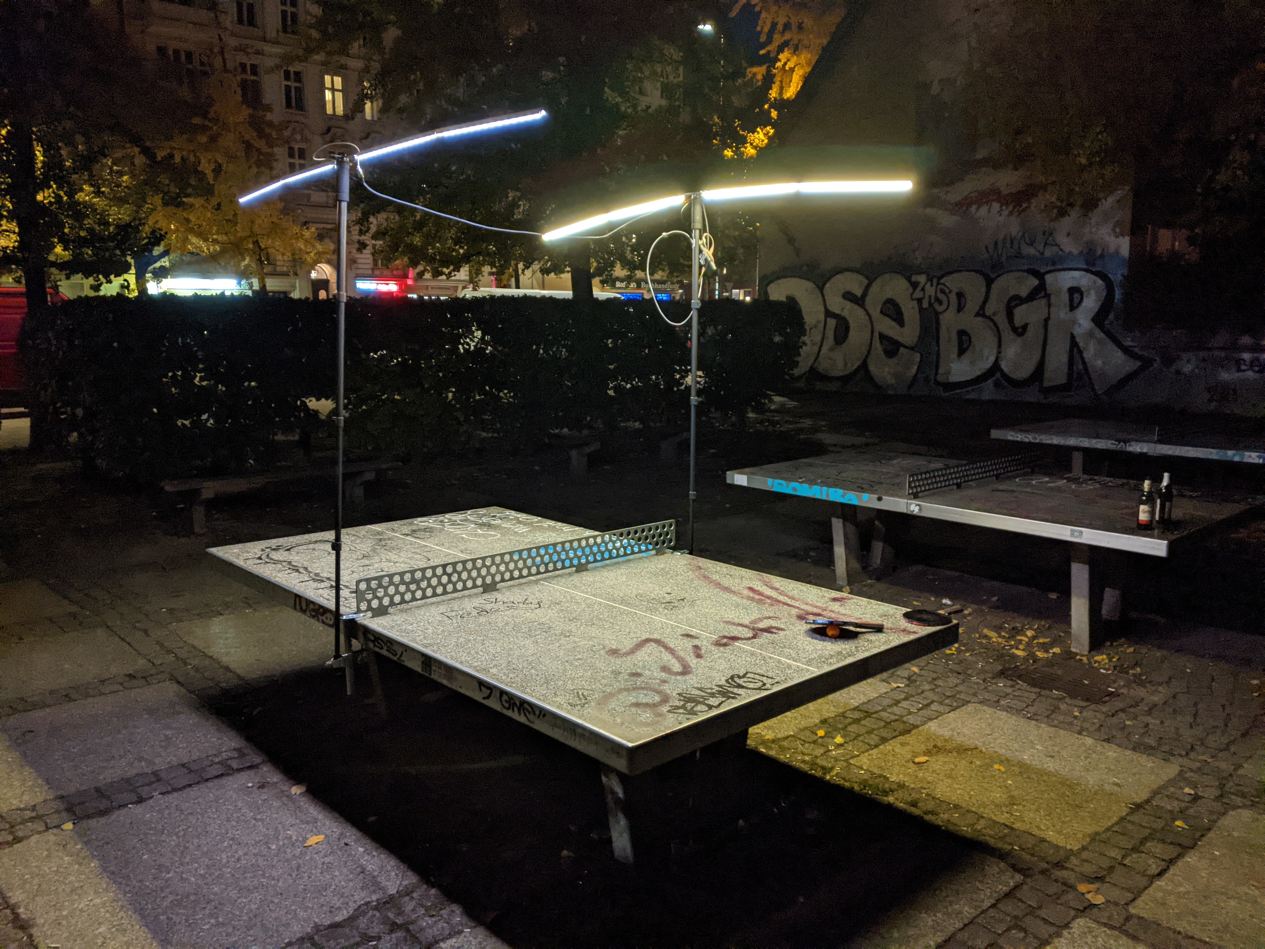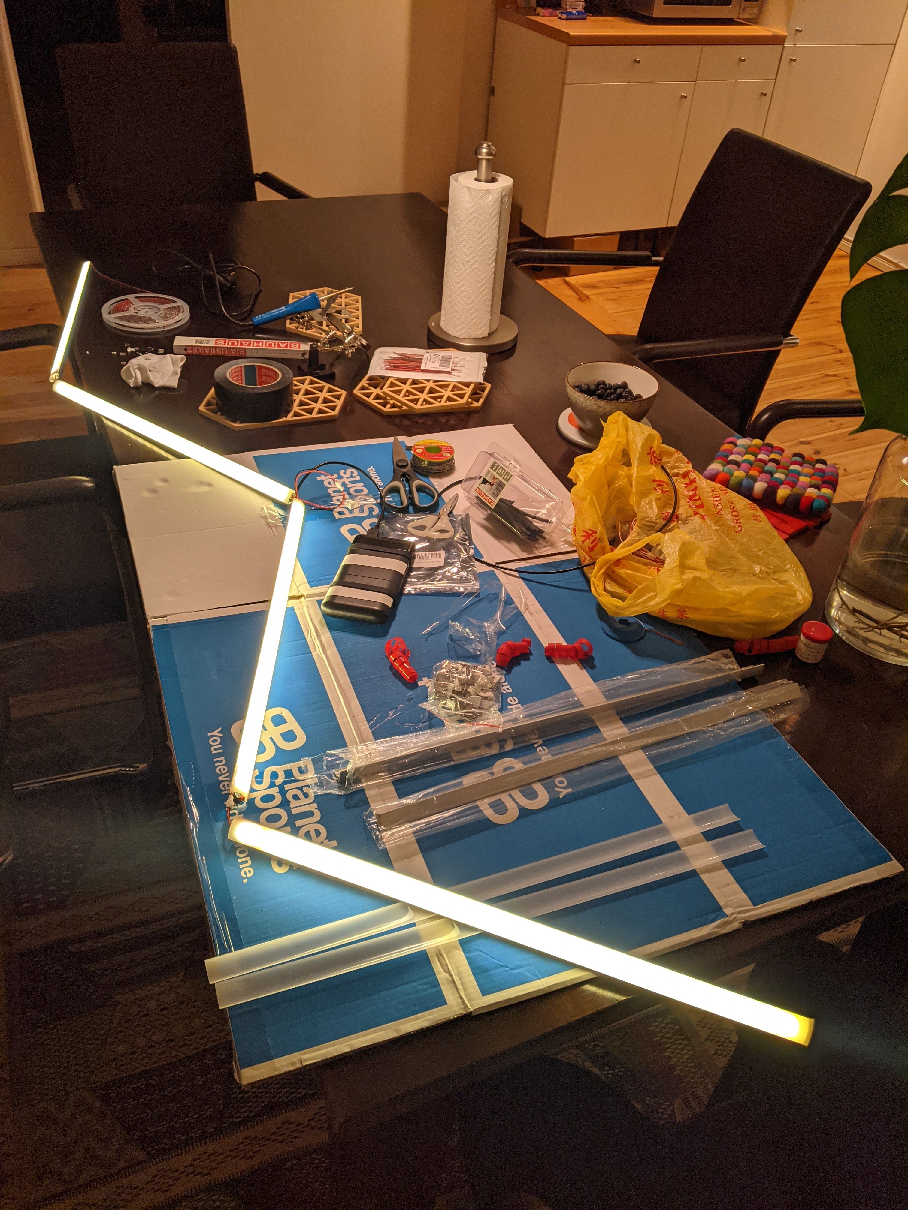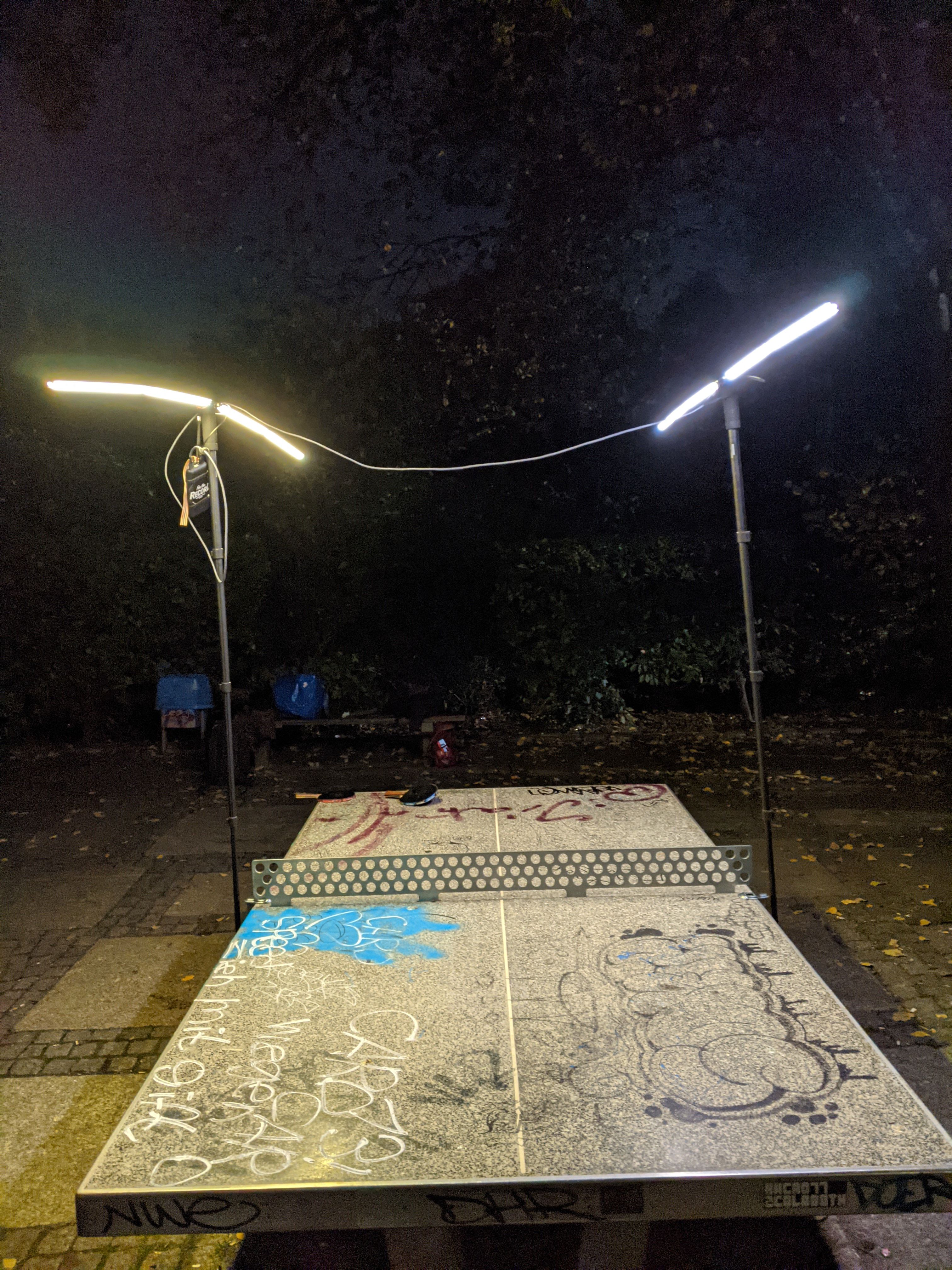 - cold white LEDs with 30 LEDs/meter (~5 hours with a 20.000Ah power bank)