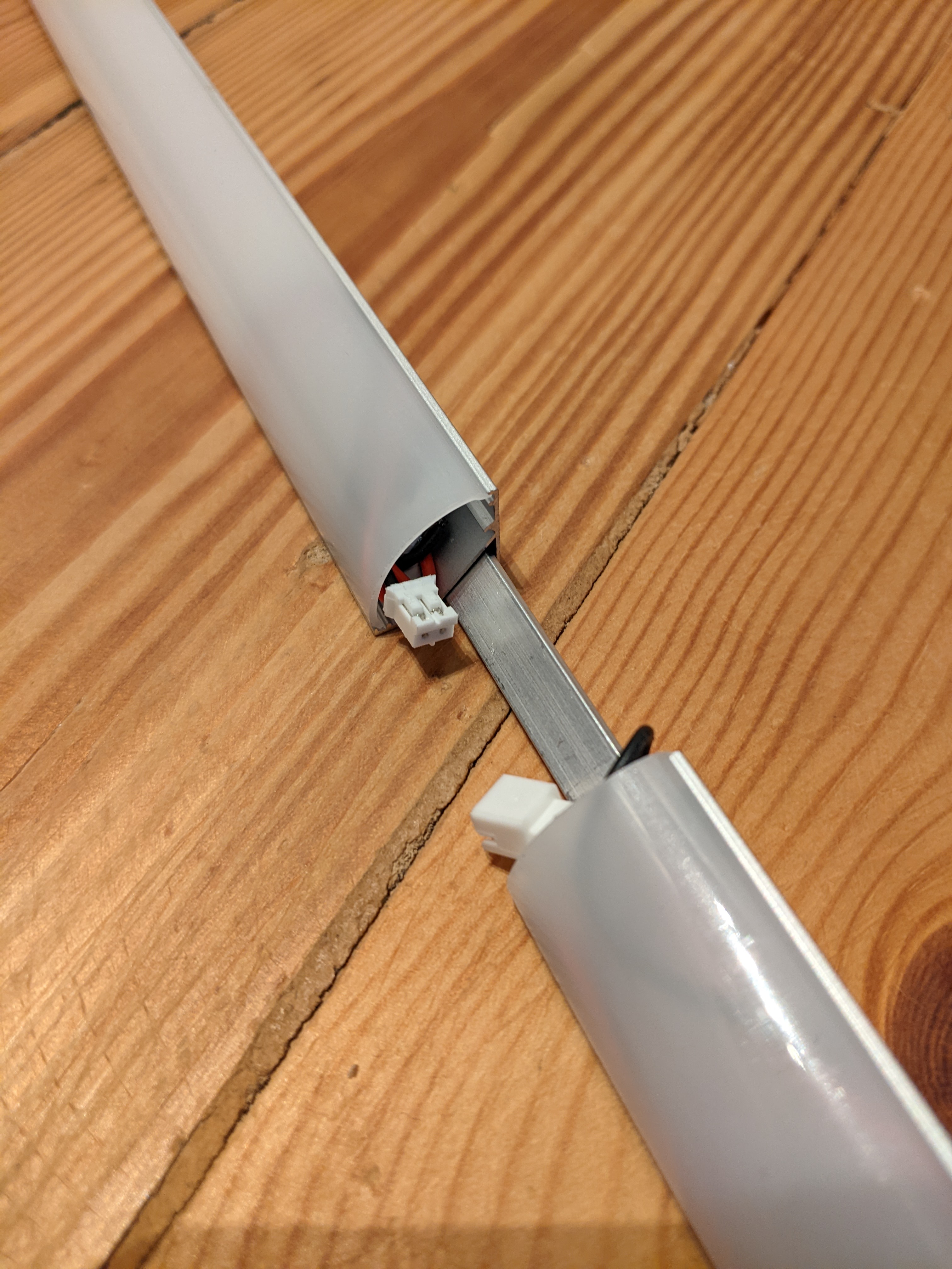 - 2m white LED strip (5V), cut in 4 pieces to match the profiles