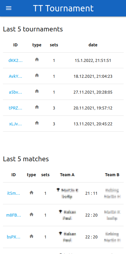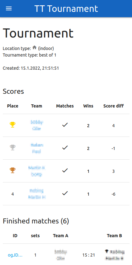 Progressive web app to track table tennis games and tournaments